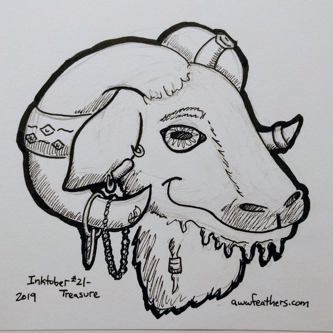 And today's #Inktober is a prize for @illuminatelumi! This lucky goat got all blinged up after finding a stash of "Treasure"! Those horns double as his bling-keepers! #inktober2019 #furryart