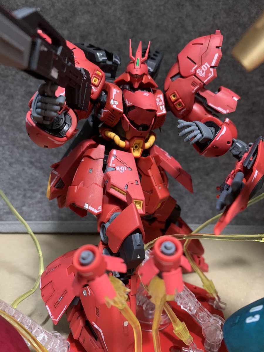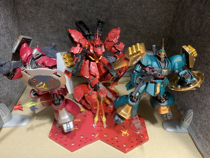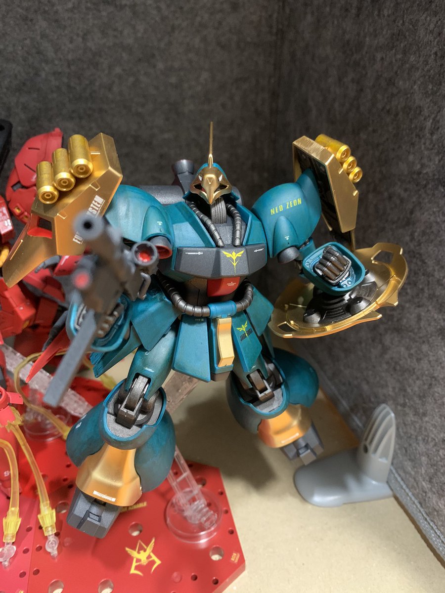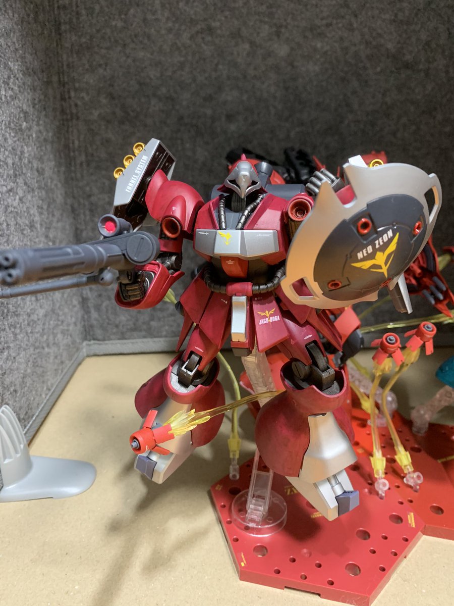 ギラズール3体連続はちょっと辛かったので途中でジオングに浮気しちゃいました(笑) デカールは他社製ですが蛍光デカールでめっちゃかっこよくなった😋 #RGジオング #ガンプラ #ガンプラ好きと繋がりたい #ガンプラの画像貼るとRTされると聞いて #ジオング