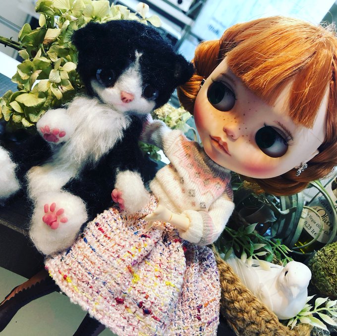 ハチワレにゃんこ🐈 明日までヤフオク出品中です❤️❤️❤️ #編みぐるみ #羊毛フェルト #アートドール #ブライス #ブライスアウトフィット #ブライス好きと繋がりたい #オビツドール #ミニチュア #アートドール page.auctions.yahoo.co.jp/jp/auction/q10…