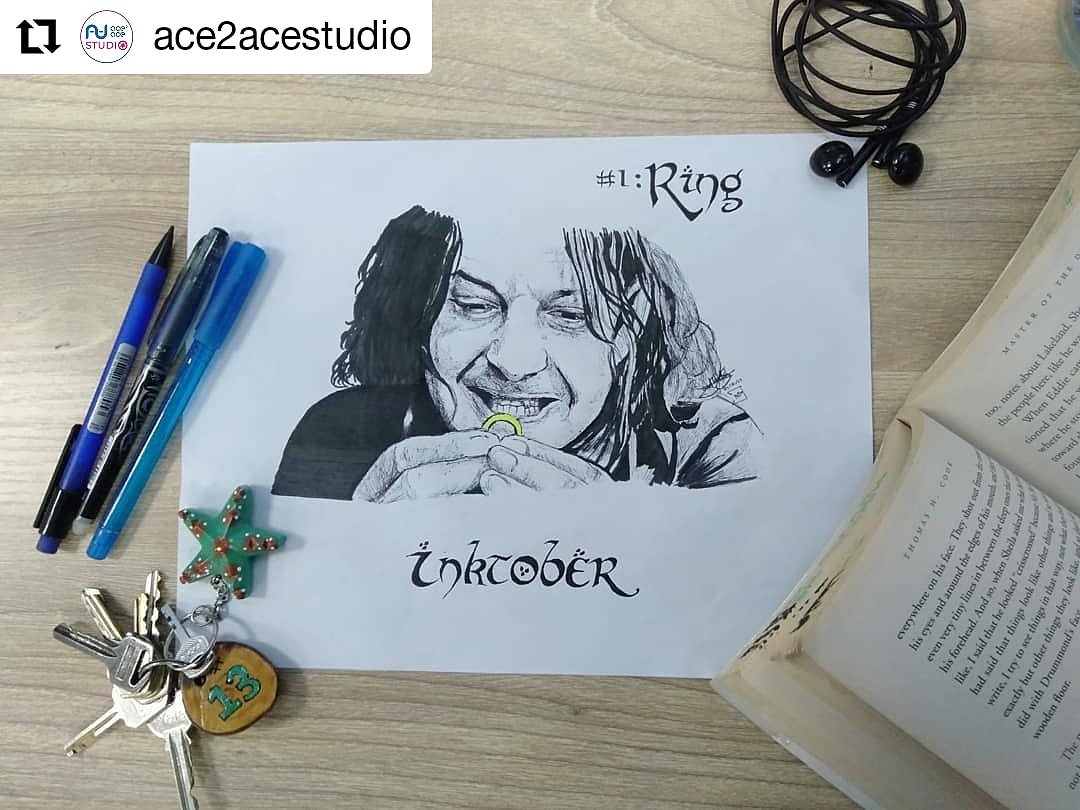 Blessed to know that I could still pull this artwork off after not having to sketch for like...years. So yes, a big thank you to my Creator. However, I won't be able to do this everyday. I'll pop out whenever I can. Check my IG. #inktober #inktober2019 #inktoberday1 #lotr #ring