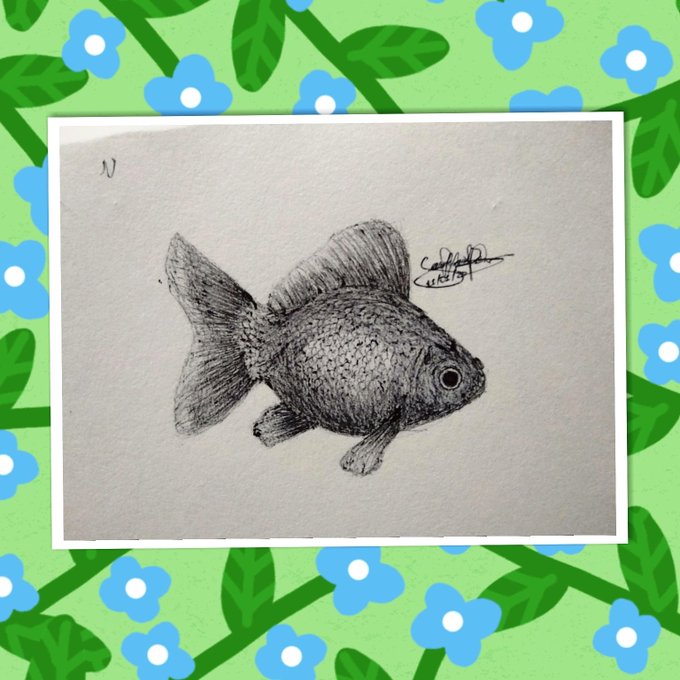 Forgot today was #october so I just rushed it. #art #day1 #fabercastell #fish #goldfish #ink #inktober #inktober2020 #inktoberchallenge #inktoberday1 #inktoberfish #pen #ring #rush #ryukin #thursday