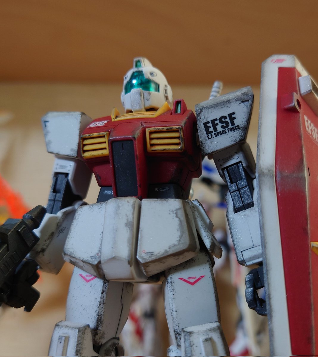 HGUCジムガードカスタム いやこのジムかっこよ!!ごっついシールドたまらん!バイザー下げ状態もよきよき!! これからも色んなジム作りたいw #ガンプラ #ガンプラ好きと繋がりたい #ガンプラの画像貼るとRTされると聞いて