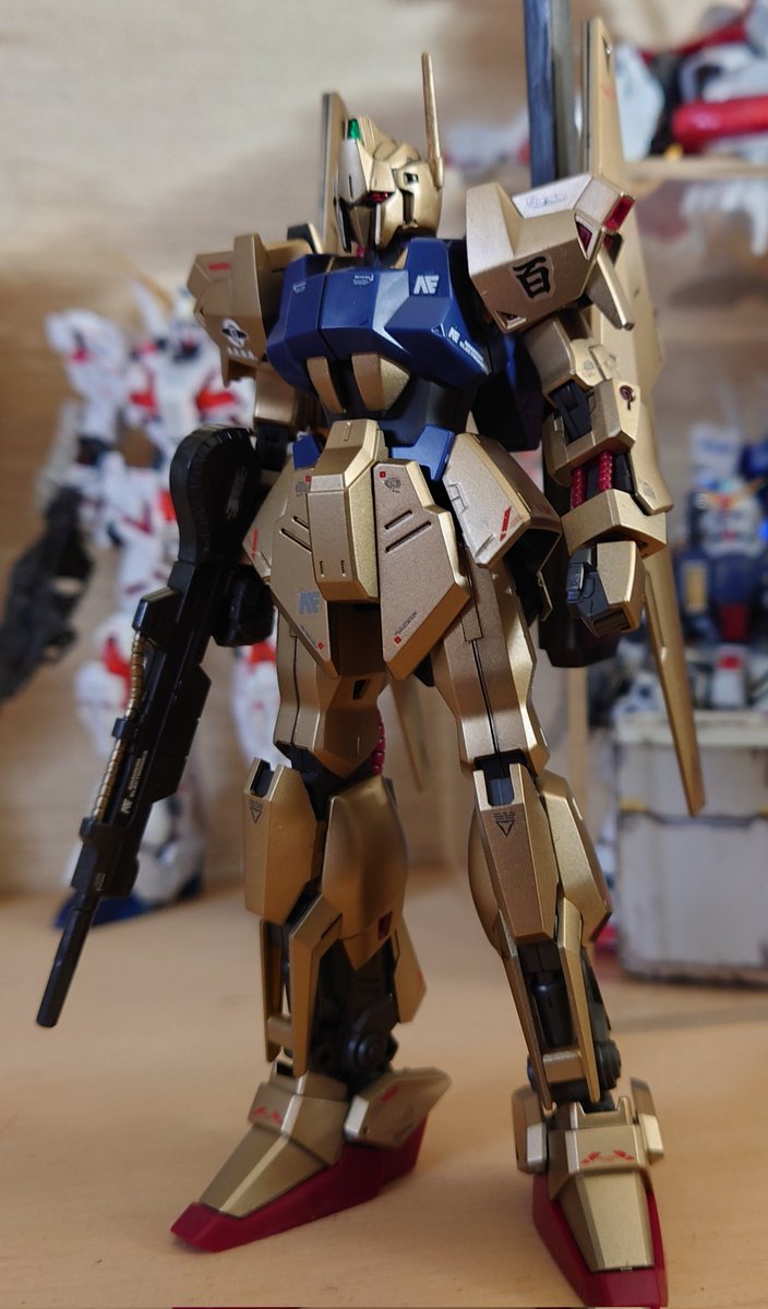 HGUC百式 GWって事でゴールデンなプラモを作りました!個人的には理想の金にできたかなと思います。 Zと百式のイケメン感なんなんだろw #ガンプラ #ガンプラ好きと繋がりたい #ガンプラの画像貼るとRTされると聞いて #ガンプラ初心者