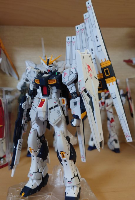 RGνガンダム 可動スゲェwwwフィン・ファンネル保持力スゲェwwwって騒ぎながら組みましたw はよHi-νも作りたい!(予約済だけど到着まだ先w) #ガンプラ #ガンプラの画像貼るとRTされると聞いて #ガンプラ好きな人と繋がりたい #ガンプラ初心者