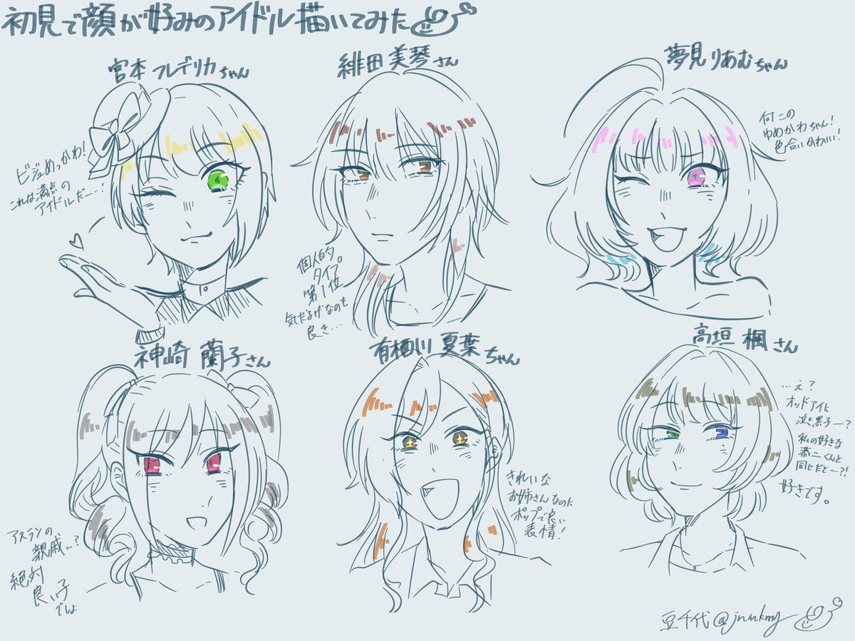 2 10 アイマスは可愛い子がいっぱいだぁ! 初見で顔が好みのアイドル描いてみた😋 22/06/16 02:13