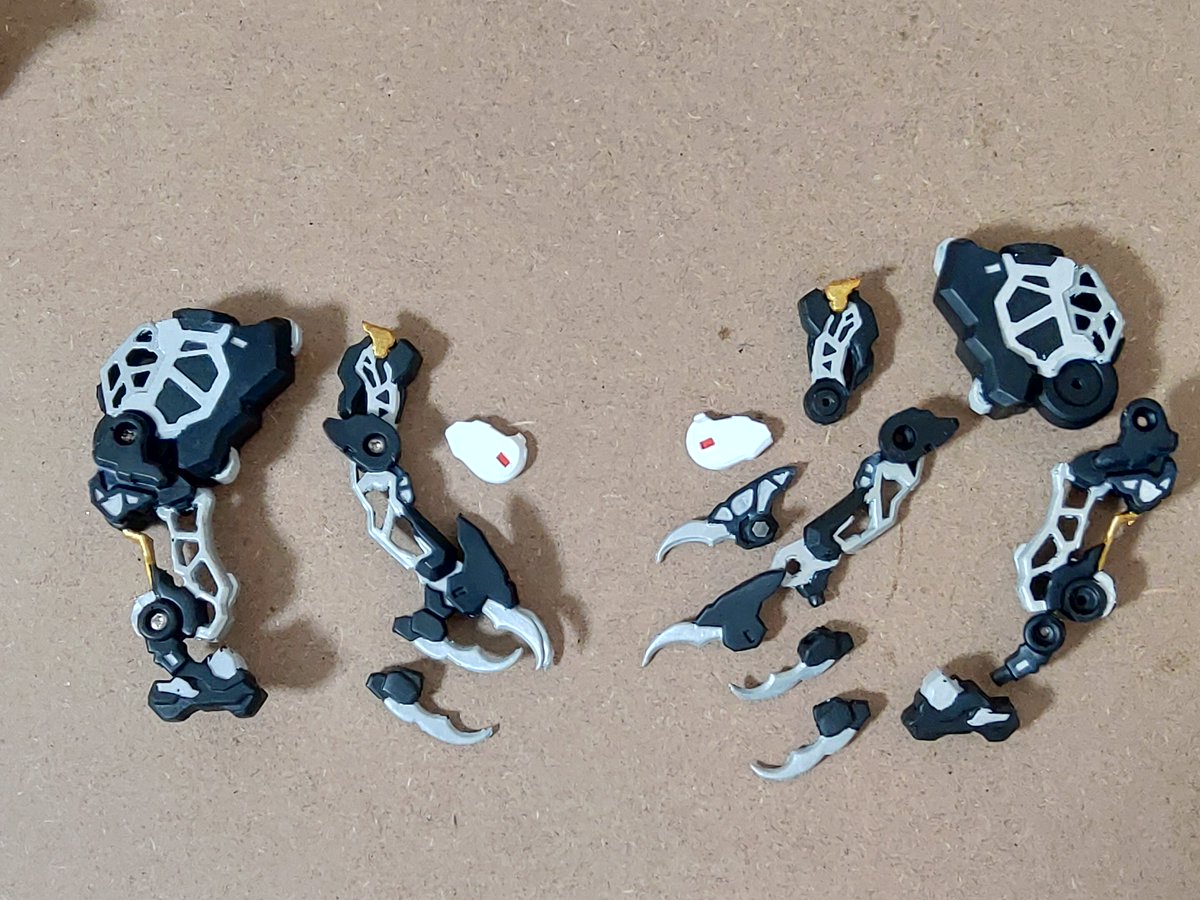 宣伝します!! かわうそまつり&ルゥニィ・スプラウトは卓番D-59,60でAKガーデン16に参加します。ルゥニィ・スプラウトの新作一個目はメガミデバイス用武装試験兵装シーケンス・シーカー 爪! トラスっぽいデザイン! 塗装してから全部ばらせる構造! 可動範囲は狭い! #AKG16 #メガミデバイス