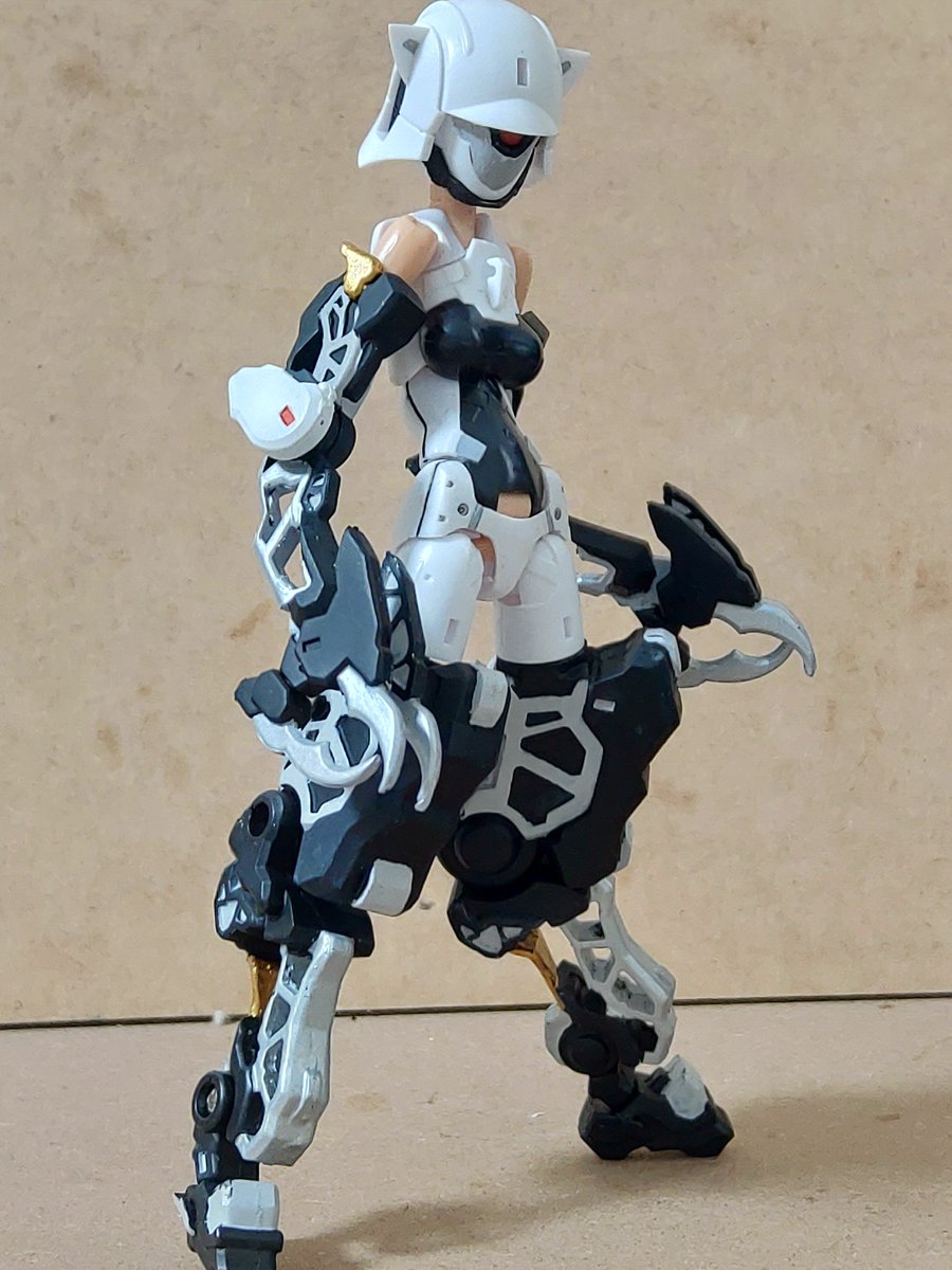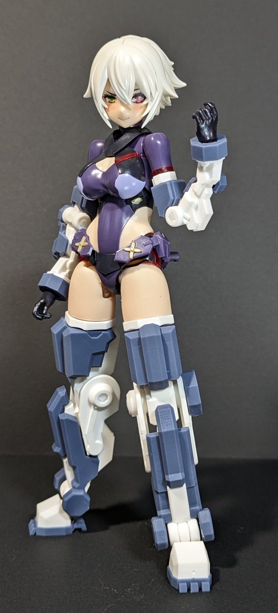 akg23ルゥニィ•スプラウトの新作、メガミデバイス用調練兵装(仮)の紹介です。 ご覧のように3dプリンター出力品2色のアイテムで通常サイズメガミ以外に皇巫スサノヲにも対応しています。 関節はプラ棒ぶっ刺すタイプの簡単組立です。渋み調整は必須にはなるかと思います。 #メガミデバイス #AKG23