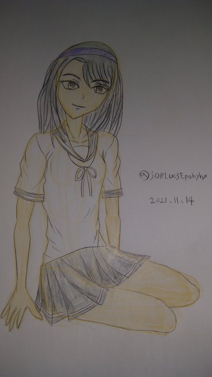 4 14 #艦これ版深夜の真剣お絵描き60分一本勝負 #艦これ版深夜の真剣お絵描き60分一本勝負_20211114 #狭霧 お座り狭霧さん 21/11/14 22:21