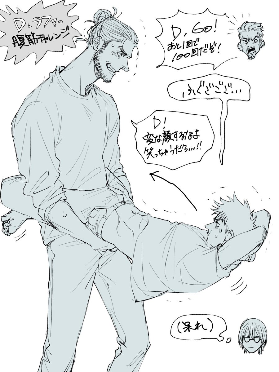 体力おばけラDの腹筋チャレンジを見守るブハ