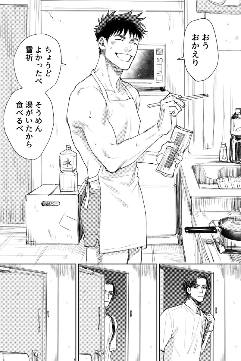 家に帰ったら男友だちに裸エプロンで出迎えられた現実が受け止めきれないユ