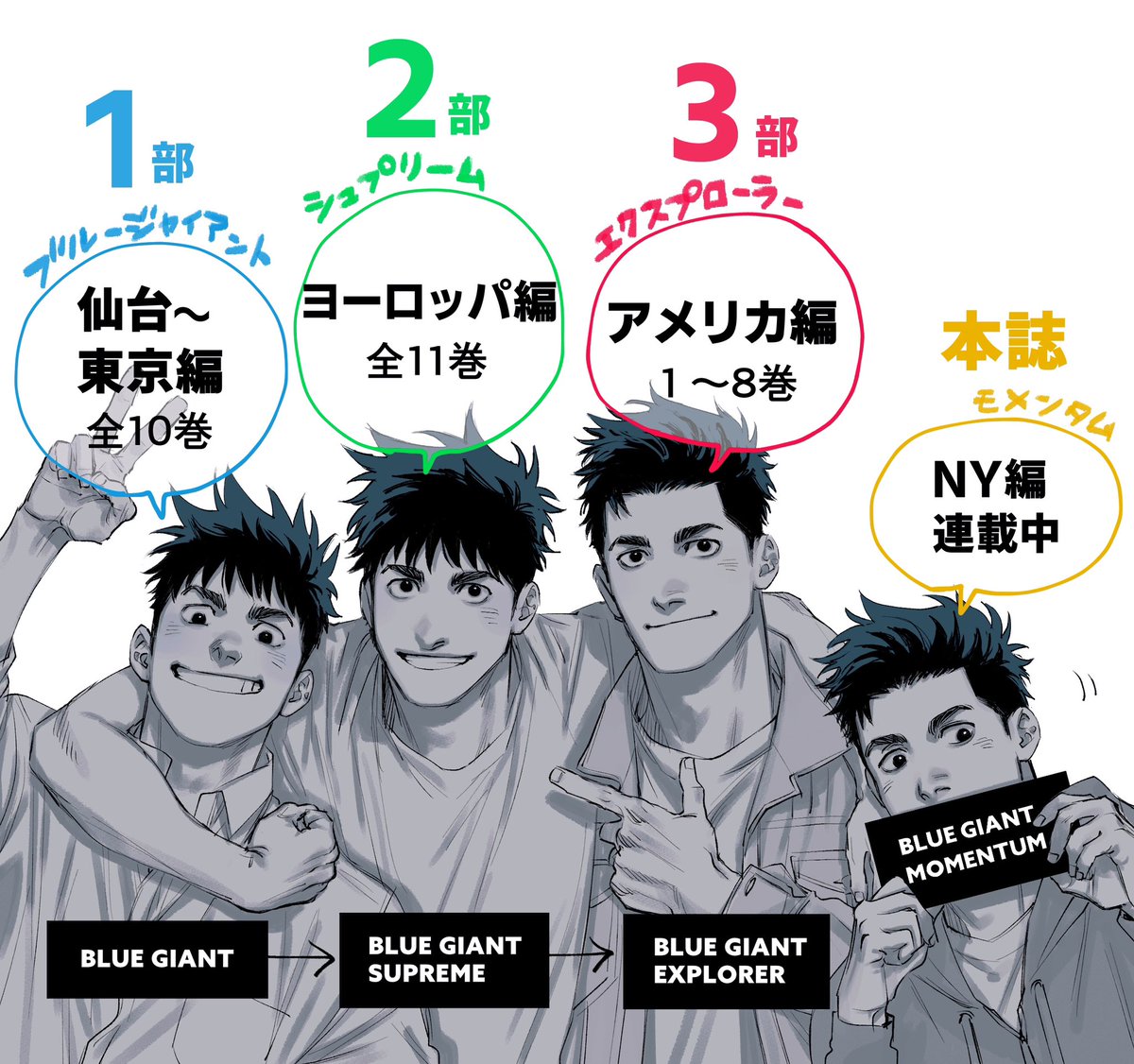 BGは現在3部出てるので読む順番お気をつけて…!という絵🗽