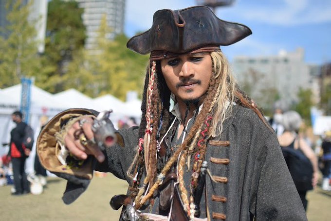 【⚠コスプレ】 “キャプテン ジャックスパロウだっおわかり?” お気に入りの1枚です🤤 📸@YouJRE239_901ありがとうございました🙏✨ #ヨーソローフォト #池袋ハロウィン2022
