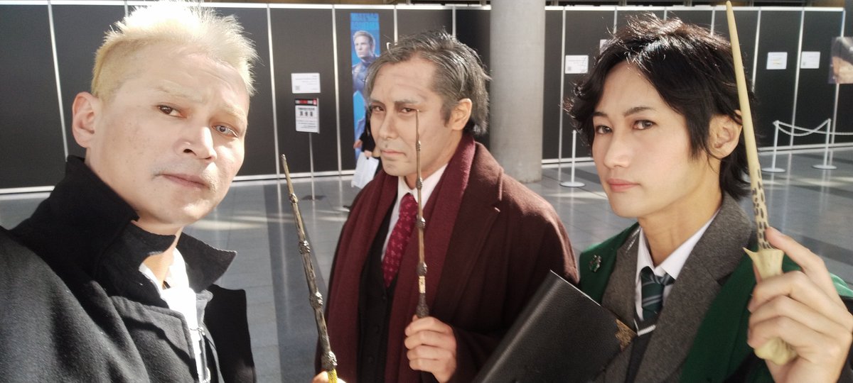 コミコン3日目のお写真♪ トムリドルのサクさん、タキシード姿グリンデルバルドの野良さん、マッチョ見せるけんなエクシアさんに、 呑んでるバルトのじょあんでした♪ 遊んで頂き有難うございました✨ #コミコン2022 #東京コミコン2022 #東京コミコンコスプレ