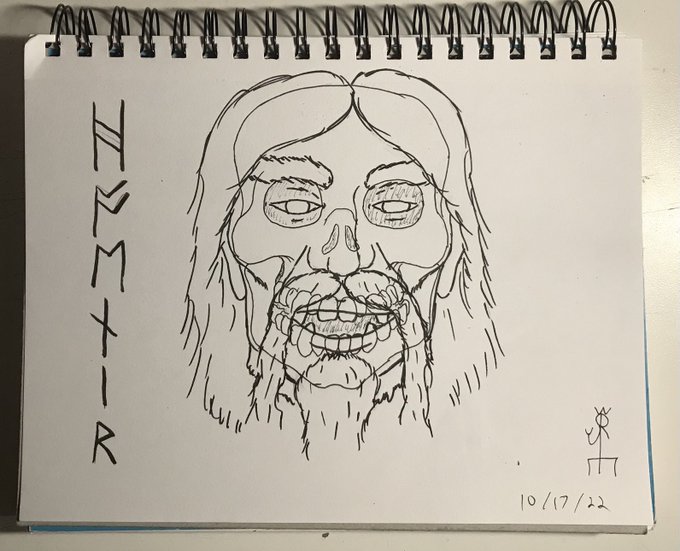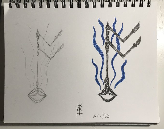 Here’s another of the planned rune-stave tattoo plans I’ve got. Oss, oration’s origin, the mouth from which wisdom flows. Also got a key image worked in there. With this and the torch imagery in the Cen image, I’ve got some Hekatean vibes going as well. #inktober #inktober2022