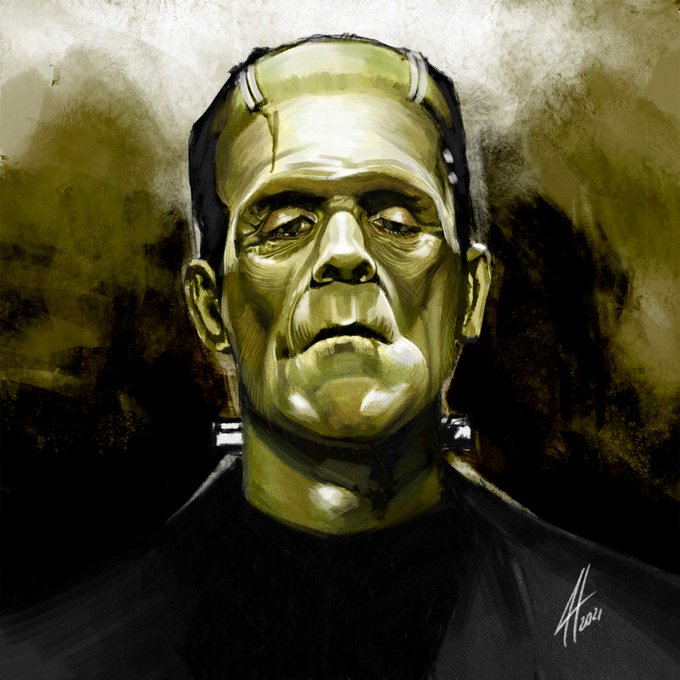 Giving up maybe on inktober (maybe) but I will still draw one a day! I felt like doing a portrait!! Tis the season!! to t-shirt or not to t-shirt? #illustration #inktober #inktober2021 #Frankenstein #universalmonsters