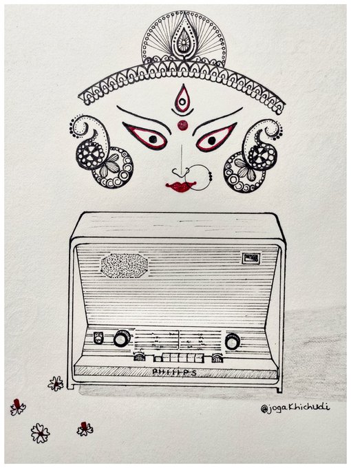 Day 4 of #inktober2020 : #radio My first memory of radio is my Nanaji's big Phillips box, which used to come alive every 'Mahalaya' morning at 4am. A ritual,a memory of childhood very close to my heart. Fragrant shiulis n arrival of Maa. #inktober2020day4 #inktober #jogadoodles