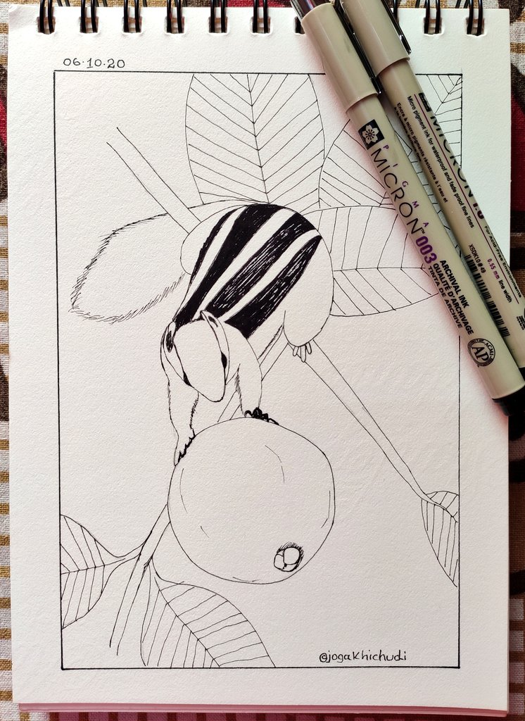 Goodmorning! Day 6 #inktober2020 : #rodent My arch shrilly nemesis up the trees... I actively fight a war with this tiny monster for some custard apples n guavas 👊 (Was too tired ystdy to post hence catching up b4 promt 7) #inktober #inktober2020day6 #jogadoodles