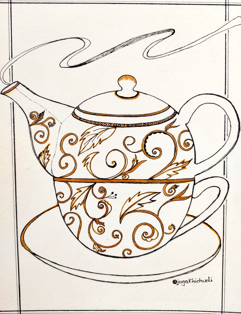 Day 7 #inktober2020 : #fancy A delicate bone-china white and gold tea pot-cup set with an aromatic exotic brew is my idea of "fancy". What's yours? :) *I'm running a day late on my inking but I plan to catch up today🤞 #inktober #InktoberDay7 #jogadoodles #Doodles #tealover