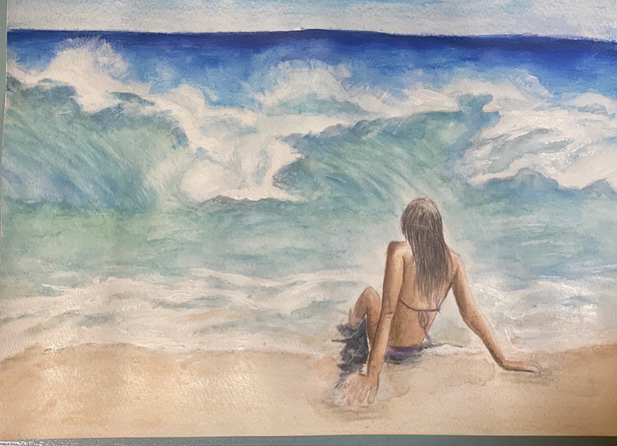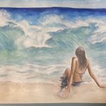 荒波描きに初トライ #色鉛筆画 #波の絵 #波飛沫はアクリル絵の具で描きました