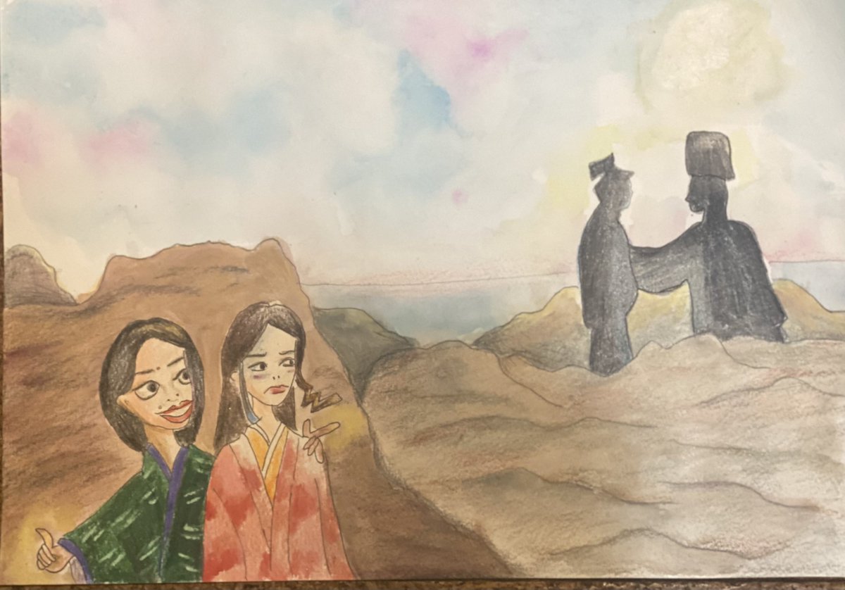 八重さんに更にトドメ刺す政子 #鎌倉殿の13人 #鎌倉絵 #殿絵 #色鉛筆 #水彩絵の具