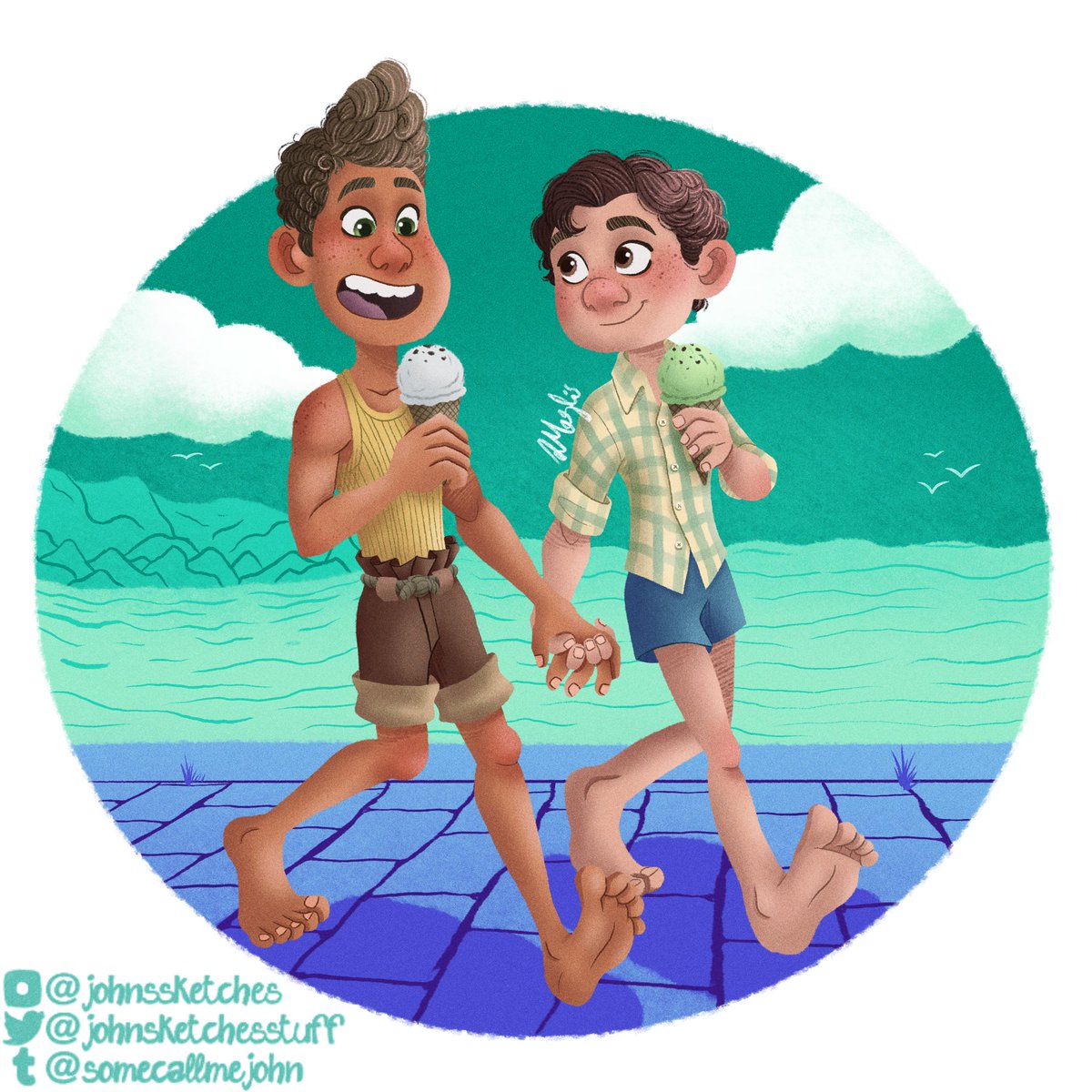 Just some fish boys enjoying life out of water #pixar #Luca #PixarLuca #Alberto #SilenzioBruno #fanart #digitalart