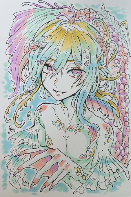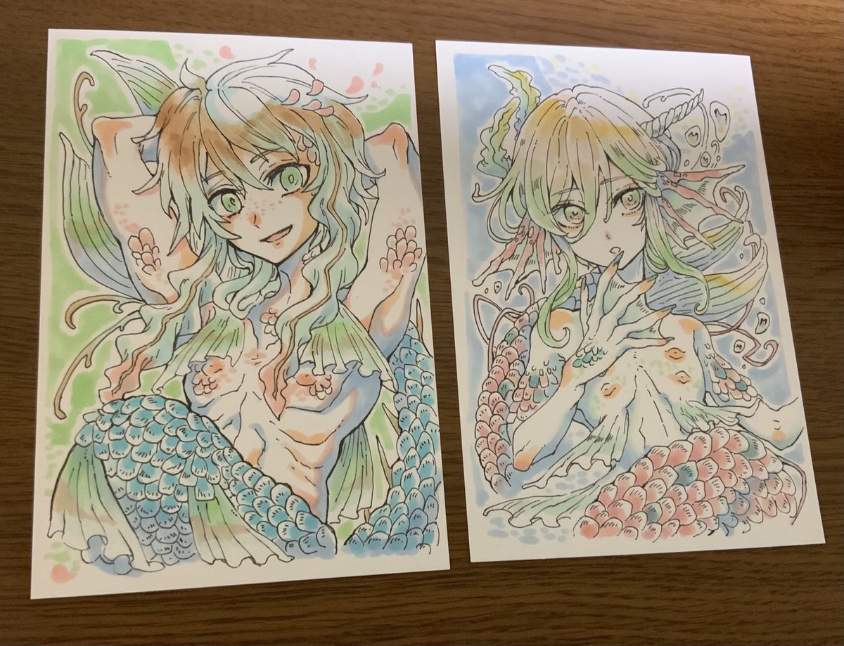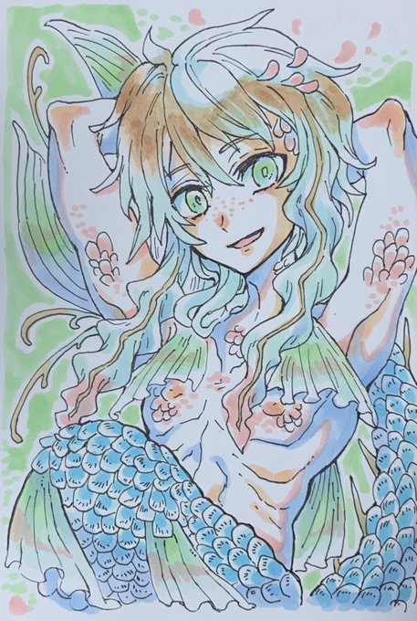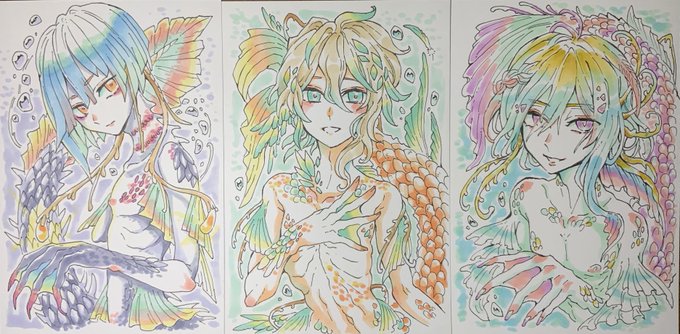 今日、アナログで描いた人魚少年たちのまとめです! あれ・・もしかして画力が上がってしまった・・? 10年以上描いていても描き続けているとなんか上手くなるんですね・・ #オリジナルイラスト #コピック #人魚