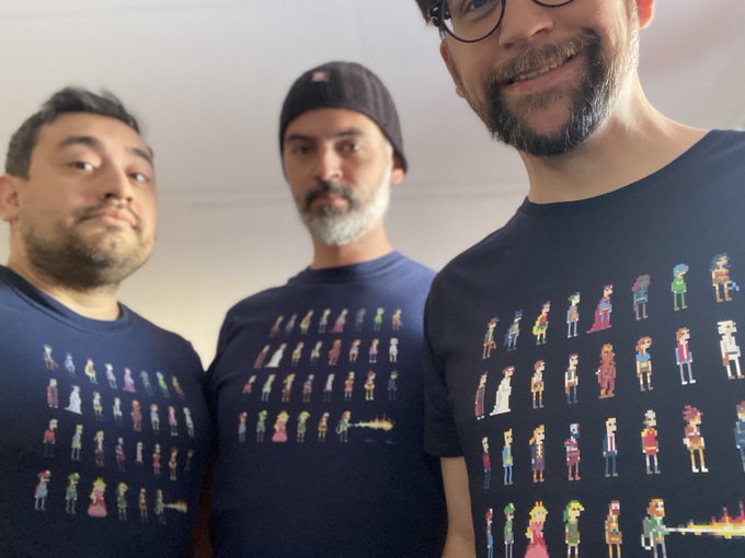 Met these two fine gentlemen who happened to have the same shirt as myself! You can get one too at johanpeitz.threadless.com/designs/pixel-… #pixelart