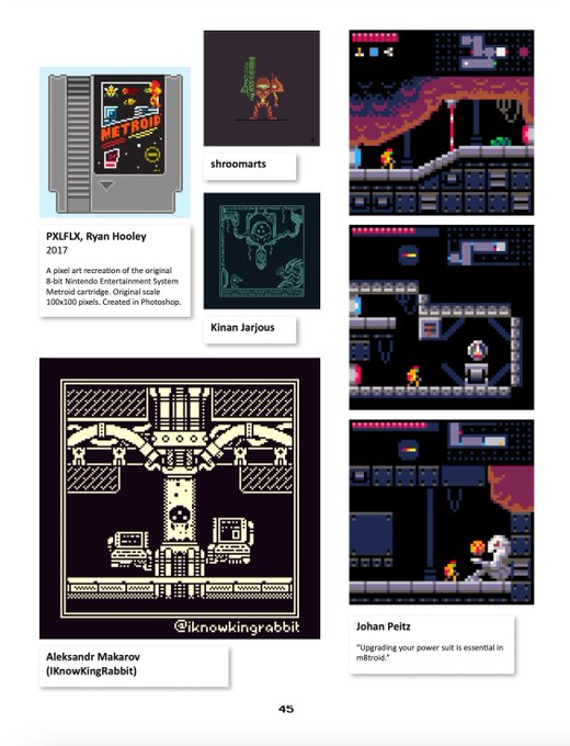 Got the opportunity to include some of my #pico8 m8troid work in @brianriggsbee's Metroid #pixelart book! Very cool book, more info here for the interested: twitter.com/brianriggsbee/…