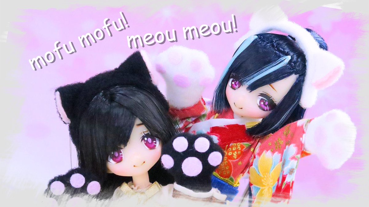 #今夜のドール撮影120分一本勝負 2/4のお題は【みみ】【過去】 🐈しろねこ葵結 と くろねこ萌恵🐈⬛♬