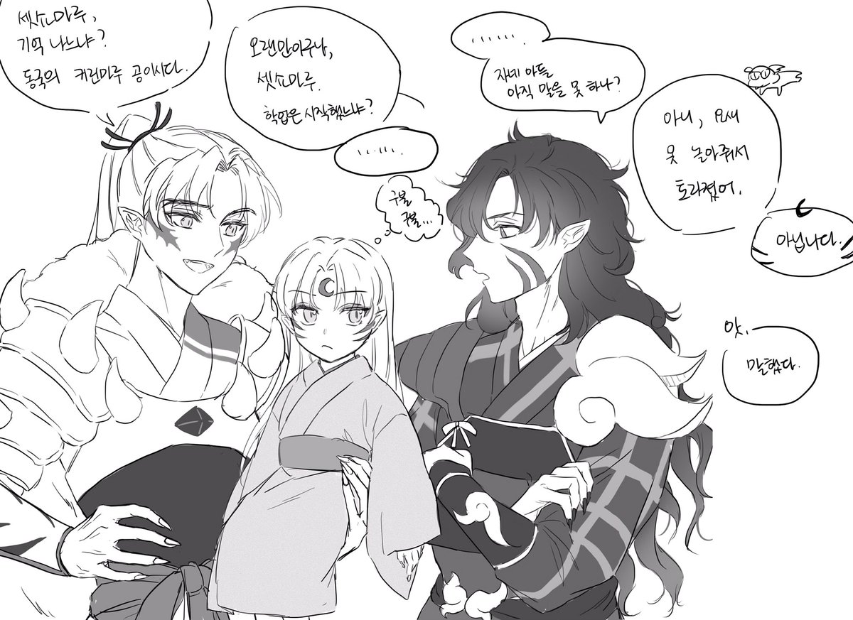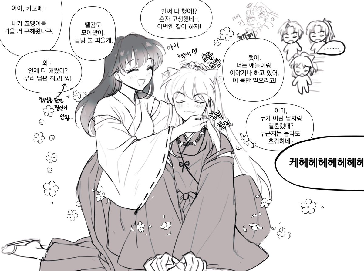 이자요이랑 리를사쿠이누 삼피셜 이누야샤 애기때부터 부끄럼 많은 엄마 껌딱지였다