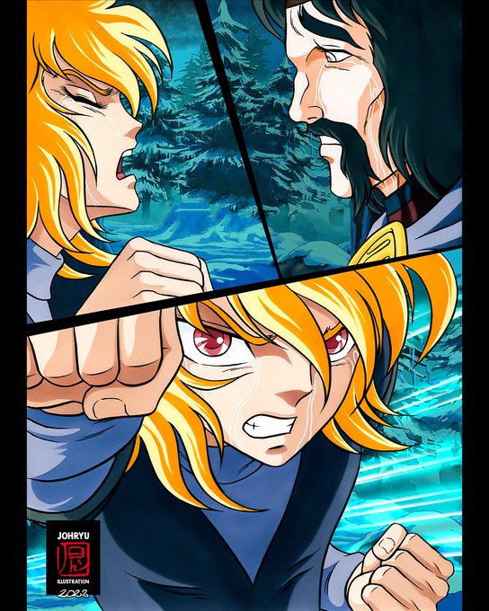 Inktober/Saintober 2022-15: Regret (God warrior Benetnash Mime vs Folken, his stepfather and master. #saintseiya #chevaliersduzodiaque #knightsofthezodiac #inktober2022