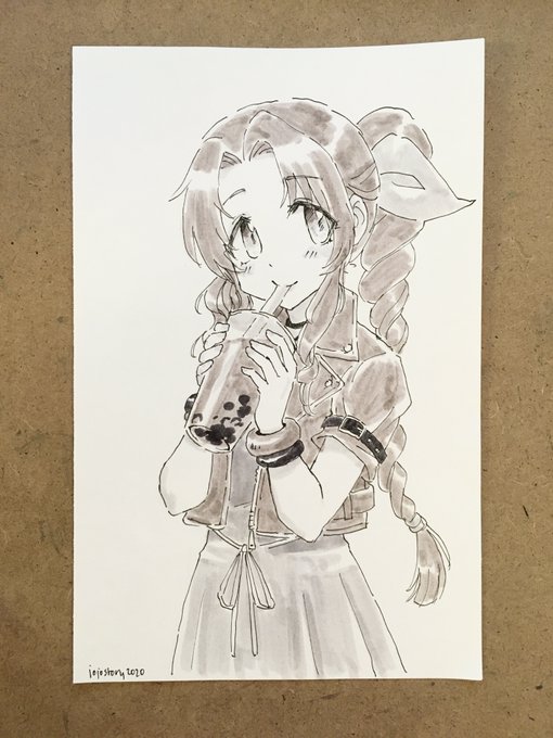 Drawtober 2020 Day 13 - Cozy Snack Aerith: would hang out with 10/10 #drawtober #drawtober2020 #beartober