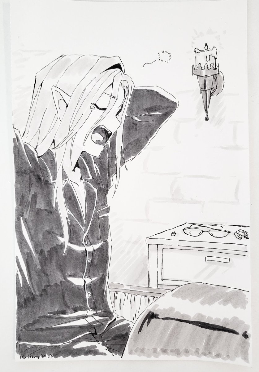 Drawtober 2022 Day 17 I hope Grandpa comes back well-rested! #VespART #NoirDayOff #reftober22