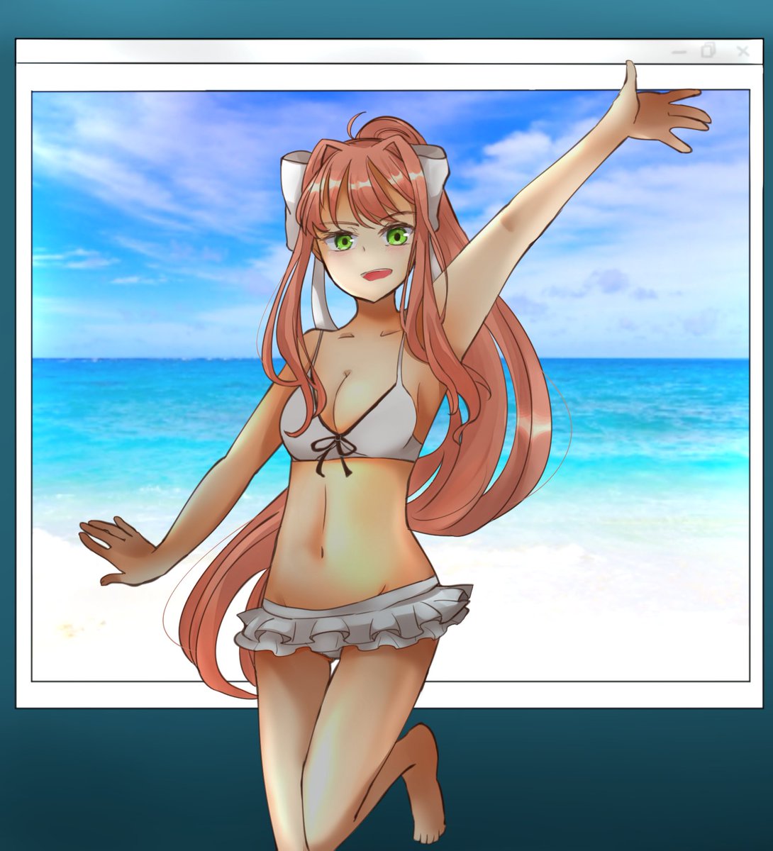 #気温が高いので気が早いが水着絵が見たい 水着Monika! 白い水着が似合いそう