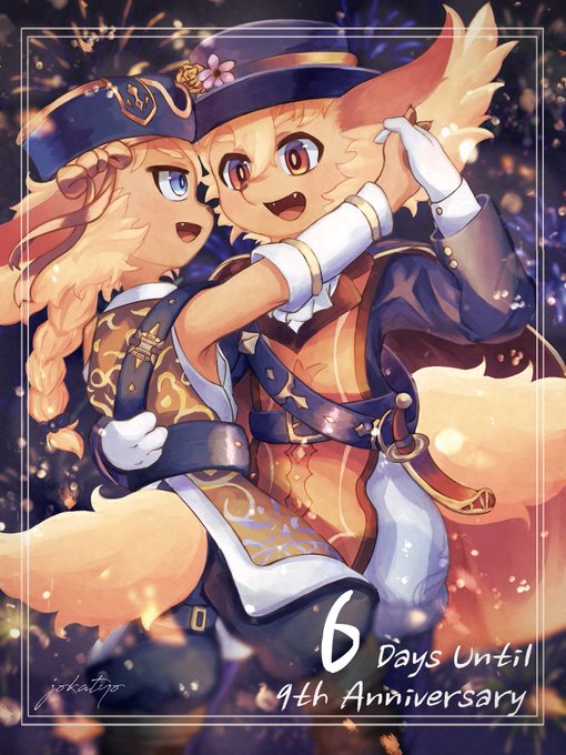 35 98 チェンクロ九周年まであと6日! 今年は遊戯の世界で踊るロロきゅんとキキちゃん描きました! 去年に続き楽しい企画を開催して頂いて感謝しかないです! #チェンクロ #チェンクロアート #チェンクロ9周年カウントダウン /リレー企画 22/07/20 00:00