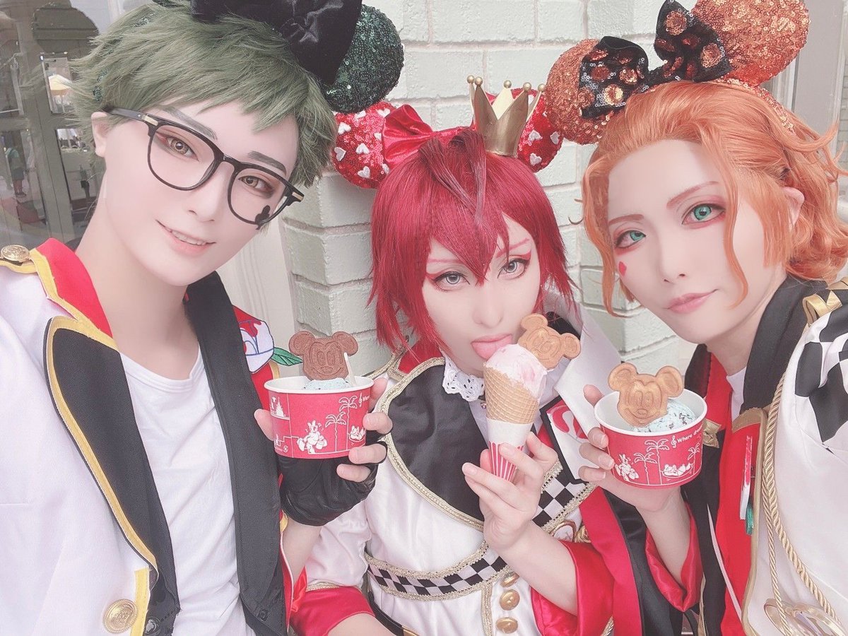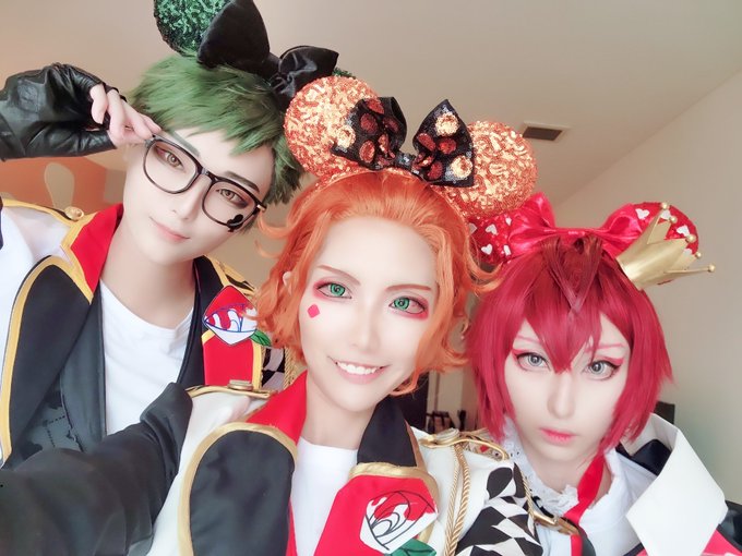 【 ツイステ仮装 】 念願のラビュル寮服でバンケット🙏💕💕 🌹 @Dlove_coronn ♣️ @yomogi_ado ♦️ @joker_wonder #Dハロ仮装2022 #Dハロ仮装