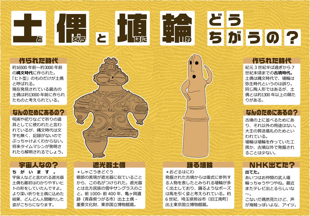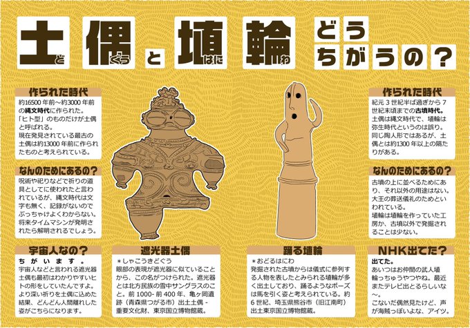 本日は10月9日! #土偶の日 です(Θ•Θ) 土偶の日は、ど(10)ぐう(9)の語呂合わせで、縄文ドキドキ会の前身である「土偶の日運営委員会」が提唱した記念日です。 今日は一日、遠い昔の縄文時代に想いを馳せましょう。 jomondoki.com/dogu_no_hi/