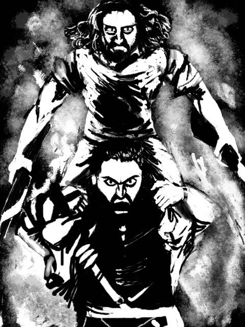 #今月描いた絵を晒そう #今月観た映画 バイオレント・ナイト エブエブ バニシング・ポイント RRR 長ネコはリプに続く 今年から毎月その月に観た映画のファンアートを描いてゆっくり描いってます