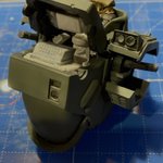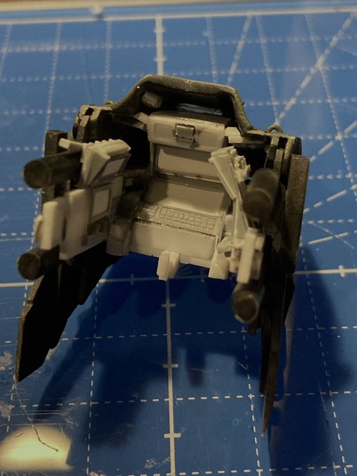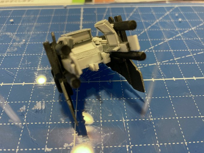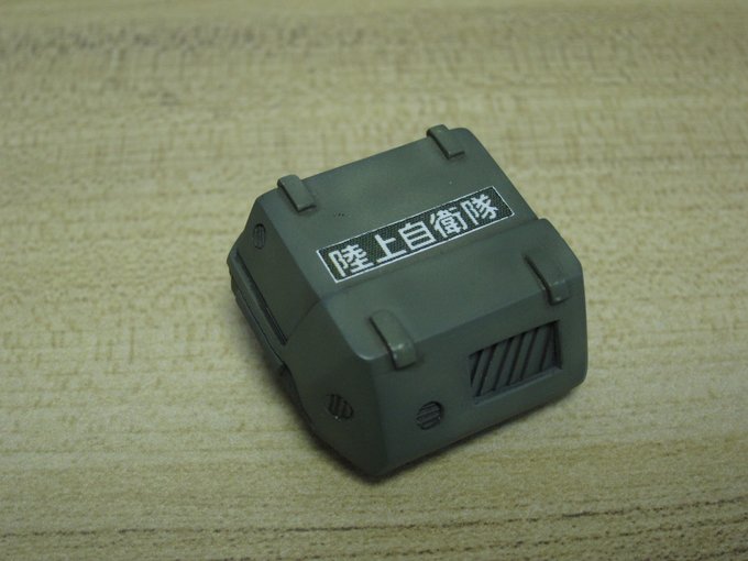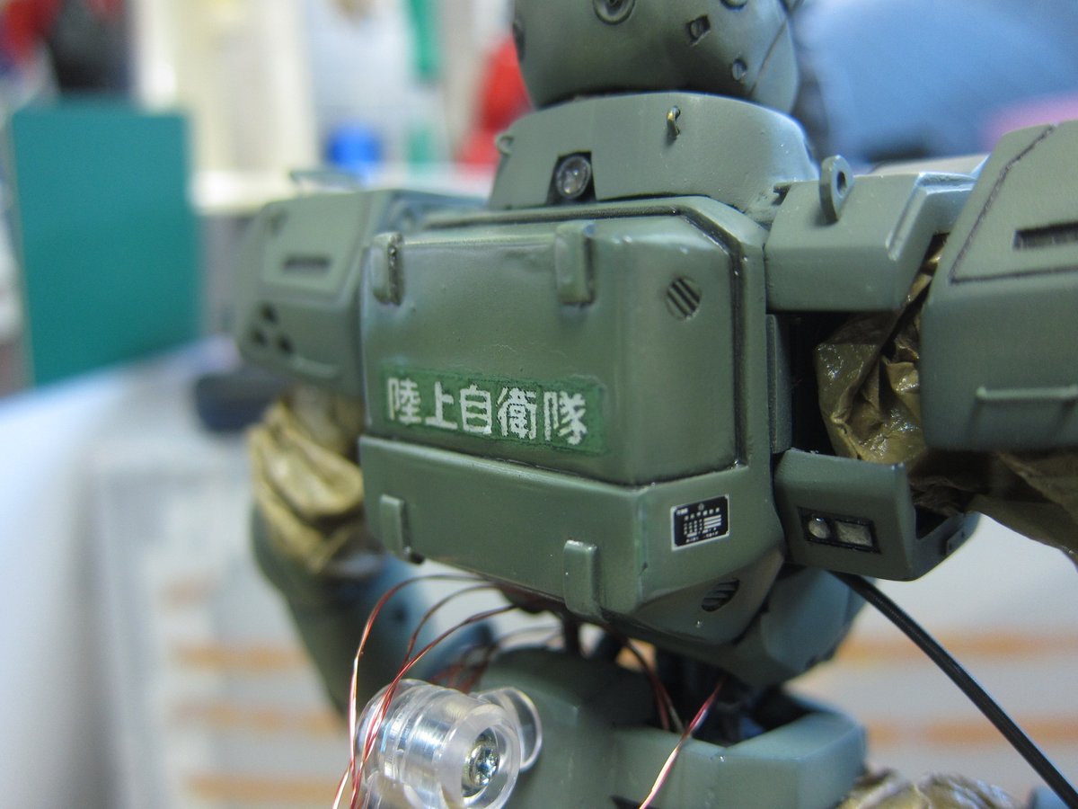 ヘルダイバーの背面にある陸自ロゴをどうやって作るか悩んでいたのですが,ホワイトデカール用紙で白文字を作り余白を筆で塗り潰してみました.厚みが少しありますが,雰囲気は引き締まったと思います. #パトレイバー模型部
