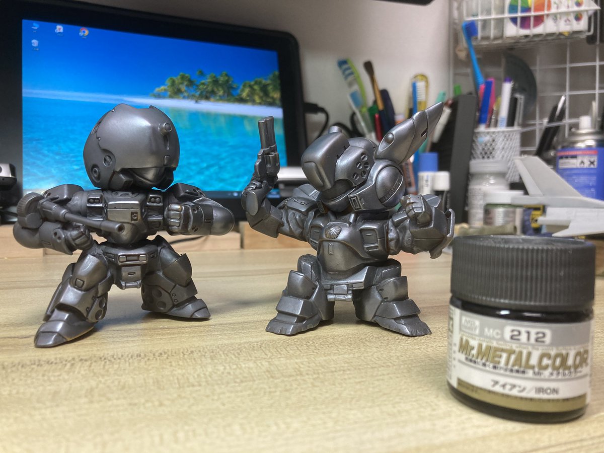 まめモデルのヘルダイバー、シタデルの筆塗りとクリアカラーのフィニッシュシートで差し色を入れ、半ツヤのトップコートを吹いて完成としました。これが1989年製とは恐るべし… #パトレイバー模型部