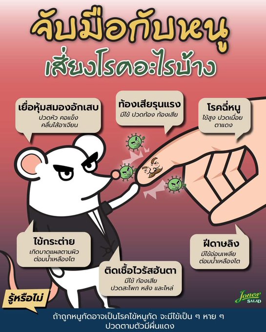 โรคติดต่อจากหนู สามารถติดได้ทั้งการสัมผัสตัวหนู การสูดละอองสารคัดหลั่งหนู การอยู่ในบ้านที่มีหนู และถูกหนูกัด จึงเป็นสาเหตุให้ไม่ควรปล่อยหนูอยู่ในระบบสาธารณสุขนะครับ #เพื่อไทย #เพื่อไทยทรยศประชาชน #จัดตั้งรัฐบาล #ภูมิใจไทย