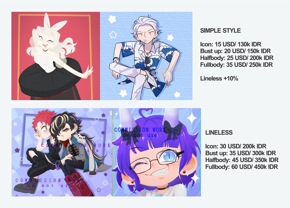 Hullo! This is my current c✦mmissy✦n sheet! Sl✦ts are limited every month Feel free to DM if you are interested or having any question! More samples & ToS: joneswibu-commission.carrd.co RT and likes are very appreciated 💖💖 Thank You!