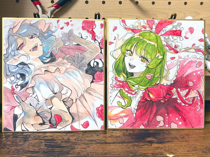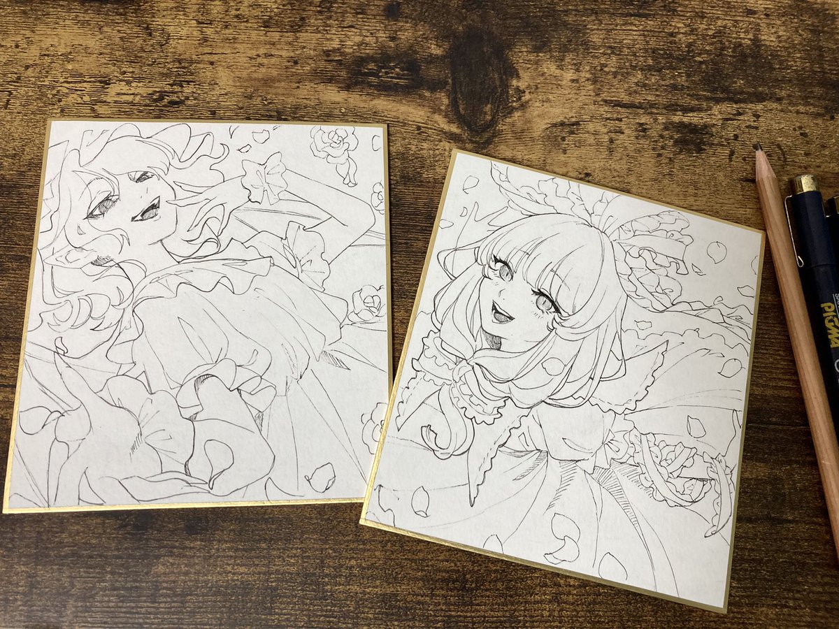本日発売の「東方Project 幻想郷の塗り絵」に早苗と雛のイラストを寄稿させていただきました 楽しく色塗りしてもらえればと! twitter.com/manga_gihou/st…