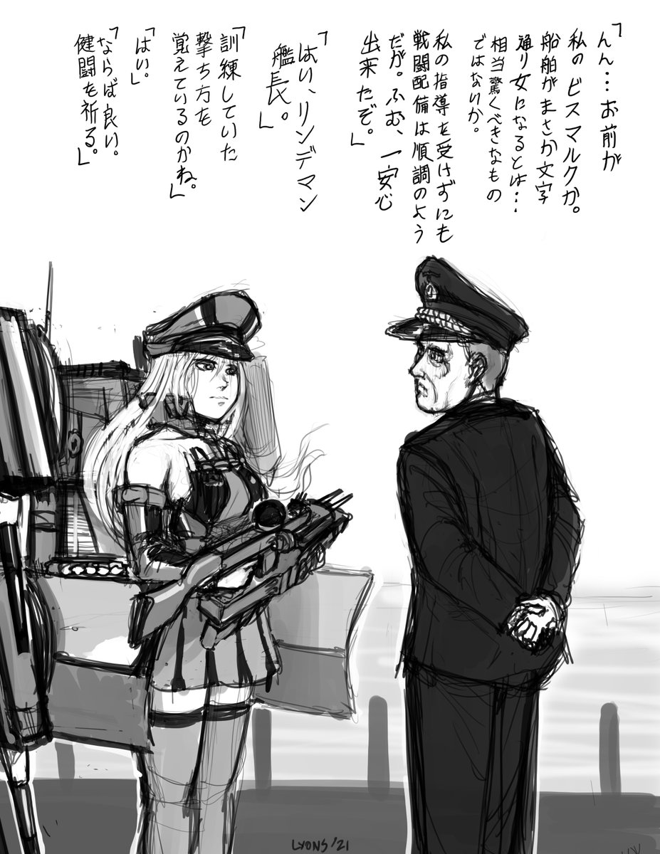 rkgk 数ヶ月前に描き始めた飛龍と多聞丸の「再開」です。 でもこの空間は一体どこなんでだろう? ビスマルクとジョンストンと朝潮のそれぞれの元艦長・提督との再開も描く予定で、コンテまで始めたけど結局暇がなかったものですね #飛龍進水日 #飛龍生誕祭2021