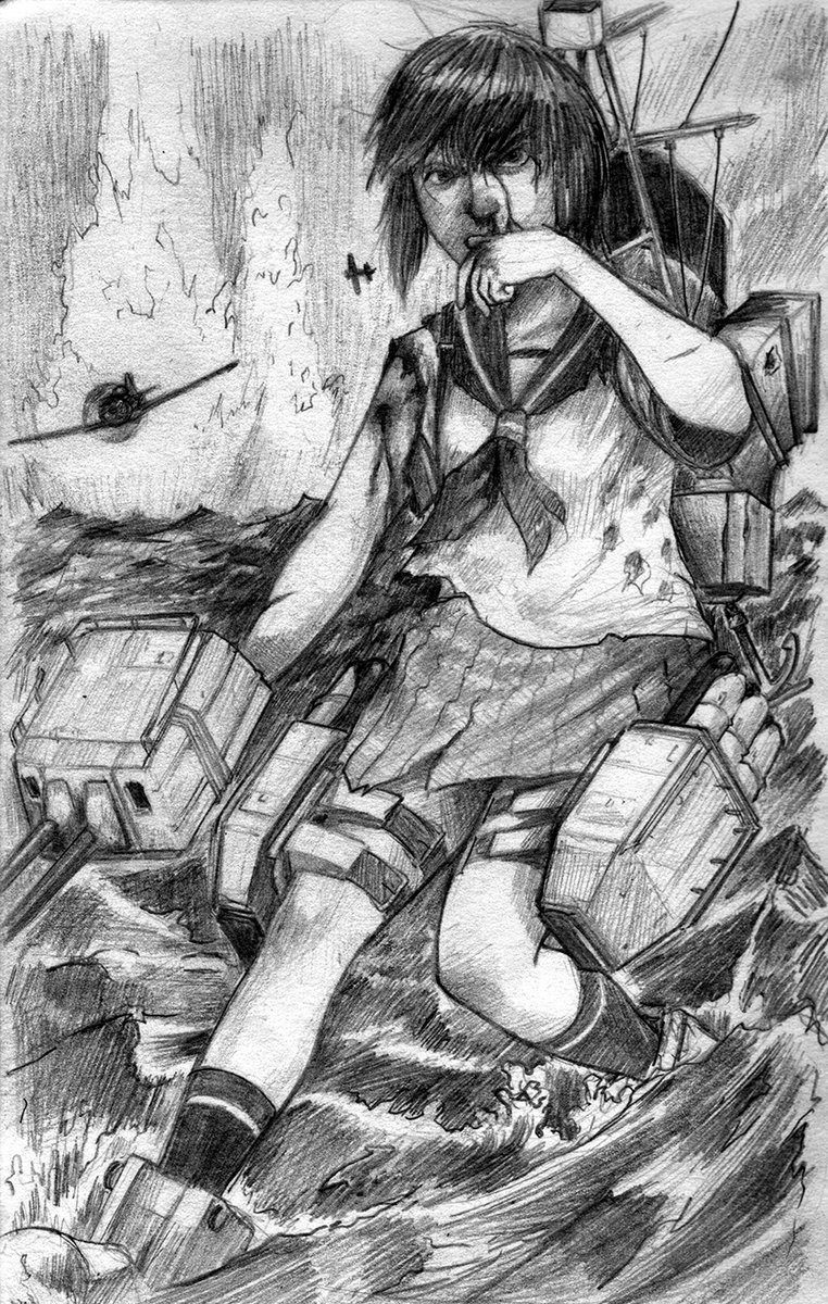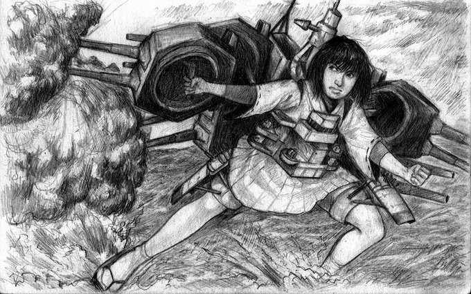 #過去絵を投げて絵を描いた気になろうキャンペーン 2017年の夏に、艦これを始めてから初めて描いてみた艦娘です! ちょっと薄汚くなっているのは、カバンの中に置いてある携帯用スケッチブックで、待ち合わせなどしながら数週間の間で少しずつ描いたものなんですから #艦これ #アナログ絵