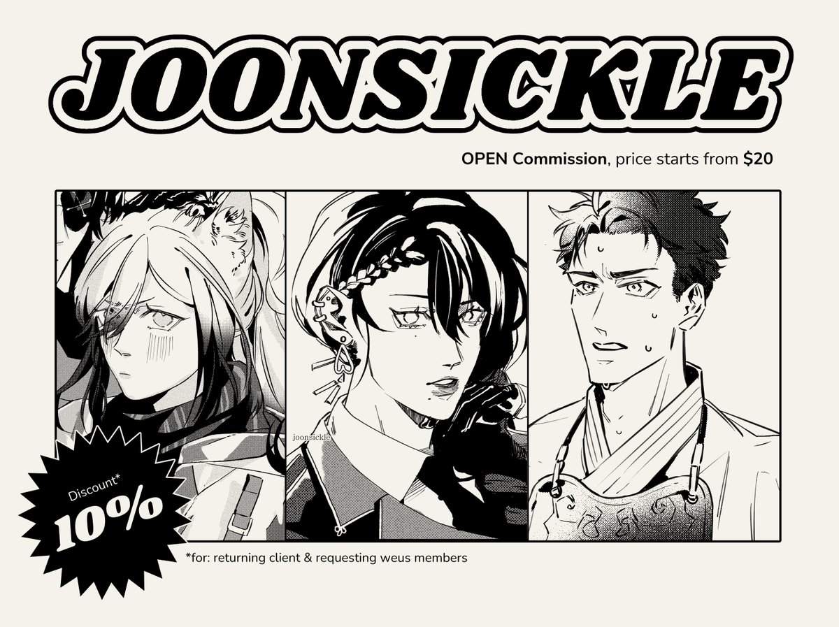 (RT+❤️ are appreciated!) hi!! I'm opening commission again!!! :D please kindly check the updated prices! 🍀kumisjun.carrd.co #commissionopen