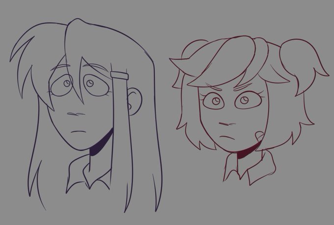 They be pouting (Also decided to move her hair clip onto right side countering Marcy's left side)