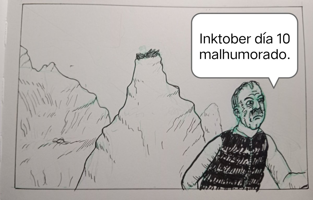 Con un personaje malhumorado se va completando la viñeta del sketch comic. Mira su realización en tiempo real. m.twitch.tv/vida7vinyetas #Inktober #inktober2022day10 #inktober22 #vida7vinyeta