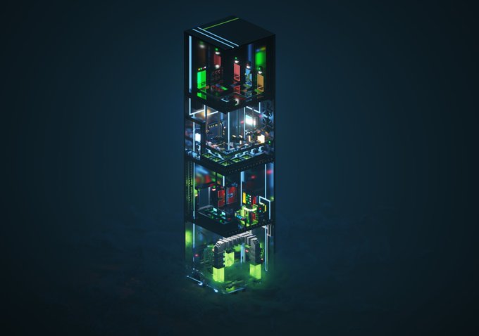 I’m super proud to have collaborated with Artchanny on this latest project! We did one floor at a time then handed it off and built on the last one 😎 #voxelart #magicavoxel #magicavoxelcommunity @ephtracy