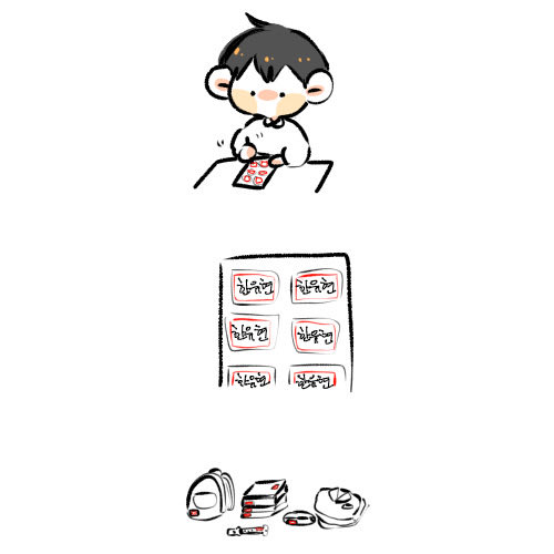 유진이네 부모님은 아마 애들 이름표안챙겨줬을꺼같아서.. 아마 유진이가 유현이 유치원~고등학교때까지 새물건받거나 새학기 시작되면 일끝나고 집에와서 다 이름 붙여주지 않았을까… 유현이는 직접 할수있지만 형이 자기 이름써서 붙여주는게좋아서 암말 안하고 있곸ㅋㅋㅋ